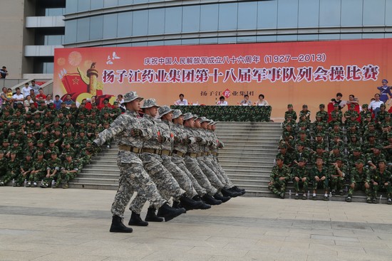 四公司代表队气势不凡,夺得冠军 行政、党群联队整齐划一,荣获冠军 九公司代表队刚毅果敢,被评为二等奖 一公司代表队铿锵有力,赢得二等奖 二公司女队英姿飒爽,取得三等奖 五公司代表队配合默契,获得三等奖 六公司代表队精神饱满,喜获三等奖 场下观众热情洋溢 集团董事长徐镜人作精彩点评 “一、二、三、四……”7月29日下午,嘹亮的口号响彻扬子江药业集团杏林广场。“立正!”随着一声铿锵有力的口令,集团第十八届军事队列会操拉开帷幕。口岸人武部部长唐建华、集团董事长徐镜人等领导一同亲临现场观摩比赛。 经过激烈的预赛,15支参赛队伍亮相决赛。他们中既有来自生产、质量、经营、管理、研发等战线的老员工,也有2013届新进大学生。看,他们昂首挺胸,气势不凡。听,他们的口号掷地有声、中气十足。“唰唰唰……”踢着铿锵的正步,一支支队伍意气风发地走过主席台,场下观众不约而同地报以阵阵热烈的掌声,为他们挺拔的“军”姿鼓掌,为他们威严的“军”容赞叹! 大学生队由9名身着迷彩背心短裤的新进女大学生组成,她们是在烈日酷暑下经过为期20天军训的230余名大学生的缩影。经过军训的洗礼,他们更加懂得铁的纪律,严明的作风和团结的力量,经过磨砺的他们已蜕变成特别能战斗的“战士”。 四公司代表队队员均为三军仪仗队退伍老兵,退伍不退色,他们身上依然充满军人的干练和坚定,毫无疑问成为当天最吸人眼球的强队。行政、党群联队不但服务保障工作做得好,精神风貌更为饱满,齐步、正步、跑步,样样不输。 经过精彩激烈的比拼,最终,四公司与行政、党群联队以均分并列的成绩勇夺冠军,九公司和一公司代表队获得二等奖,五公司、二公司和六公司代表队荣获三等奖。 比赛结束,徐镜人董事长发表热情洋溢的点评,他充分肯定本次比赛的成果,并鼓励大家将训练中不怕累、不服输的精神带到今后的工作中,为推动扬子江又好又快发展不断奋斗!