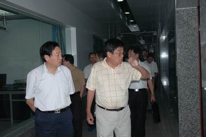 图为韩庆华副秘书长(左)一行在集团质量检测中心视察