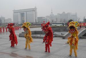 集团舞龙舞狮队向市、区政府拜年