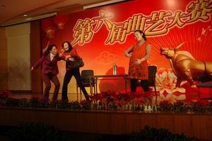 农历正月初八,海燕大酒店威灵仙厅气氛热烈,笑声不断,掌声不断。集团董事长徐镜人和广大职工在这里欢聚一堂,欣赏一台由职工自编自演的曲艺大赛,欢度牛年新春佳节。