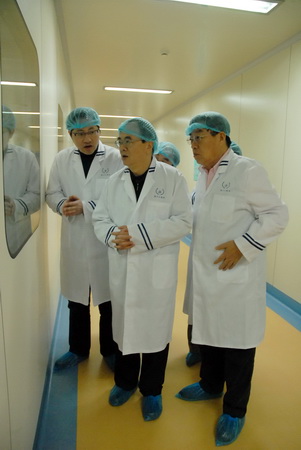金少鸿一行深入集团冻干粉针车间、固体制剂车间、检测中心以及刚建成投产的口服液车间二号车间现场考察,详细了解企业发展状况。所到之处,扬子江整洁优美的厂区环境、国际先进的生产设施、严谨规范的质量检测流程,博得金少鸿连连称赞。