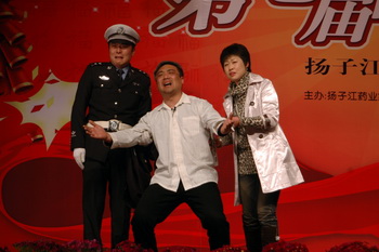 小品《夜诊》以发生在深夜的交通事故为背景,两个互相救助的陌生人因为紧紧抱在一起而引起各自夫妻的猜测。感情与信任、怀疑交织在一起,折磨着正在等待的人,也敲打着观众的心。小品《特殊交警》催人泪下,其中不难看出去年几起严重的交通事故的印记。小品《约会》描写了一对恋人在新课题研发时相互理解、相互帮助的感人故事。小品《喜从天降》,通过销售员为患者送药上门的事件,折射了扬子江人“患者至上”的服务理念。小品《招聘》讲述了汶川大地震中扬子江对灾区人民的援助,诠释了企业“护佑众生”的理念。另外,古筝表演唱《海慈霓裳曲》、反串音乐小品《大话西游》等节目雅俗共赏,也都将扬子江人昂扬的斗志和精诚合作的团队精神表现无遗。