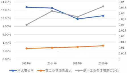 工信部的数据显示,2017年,中国医药工业持续向好态势,主要经济指标增速加快。1-9月,医药工业规模以上企业实现主营业务收入22936.45亿元,同比增长11.70%,增速较2016年同期提高1.61个百分点;实现利润总额2557.26亿元,同比增长17.54%,增速较2016年同期提高1.90个百分点;医药工业增加值增速为11.6%,高于同期6.9%的GDP增速和6.5%的工业增加值增速。
